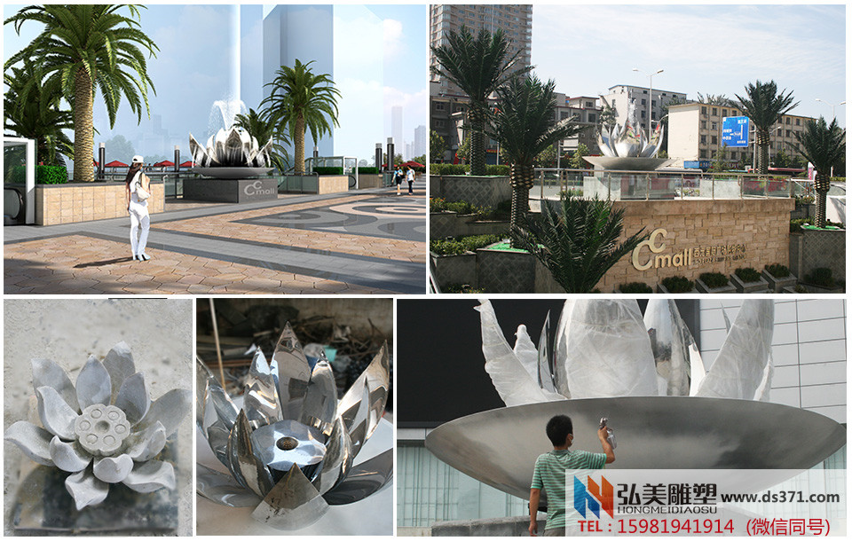 《不锈钢荷花雕塑》合作对象: 西元地产 合作时间:2015年